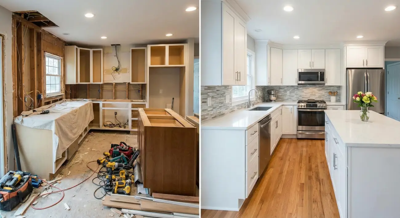 Wir montieren Ihre L-Küche fachgerecht und präzise, inklusive Schränken, Arbeitsplatten und Geräten.